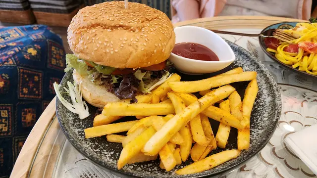 由於之前有朋友話裝修挺有特式,而且5月尾結業,所以今天與朋友來打卡試試土耳其菜。店舖裝修的確有土耳其的感覺,但除了土耳其早餐外,其他餐點大都是西式或東南亞式的食物。原想點網上較推薦的土耳其雞卷,但是日沒有出售。最後我們點的亦是burger及pasta, 感覺較穩陣。今天點了:🍝土耳其開心果千層酥: $58·只有兩個小方塊的酥,仲要齁甜,叫起後等了15分鐘,再催就話整緊,但個酥底是冰的。。。同埋同一般方塊酥冇分別,沒千層䣷的影子。。。🍝Not lonely linquine 龍蝦尾扁意粉 $188味道不錯,有完整龍蝦尾,同一粒帶子,意粉麵質不錯。🍝Burger: 有澳洲和牛,份量及味道挺好。$188+10%共477元(連加一)但綜合是一間裝潢挺有特式的cafe,拍照挺好的,但不太能算土耳其餐廳吧。味道可以,但餐點缺乏特色,加上上菜速度有點慢,服務員又不細心,只靠裝潢應該吸引不了回頭客吧~…查看更多
