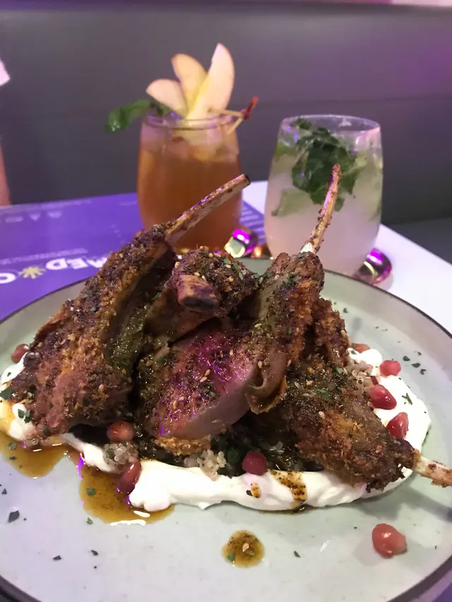 紫調的氛圍環繞住成間餐廳,顯得格外浪漫優雅,卡位如同小包廂的空間非常適合同朋友、情人同進晚餐。餐廳是開放式廚房,可以欣賞到廚師精細地擺放出每一道菜色,廚房環境乾淨衛生,更可了解到他們使用的食材,透明度非常高,令人吃得安心,重點係一點油煙味都沒有的。帶子蟹肉牛油果他他配薑薑黑醋汁作為前菜真的沒有可挑剔的。法包脆軟適中,麵包會有鹹味,配搭帶子蟹肉、牛油果溶、三文魚籽同黑醋汁一齊吃,味道絕對配合得開胃又不膩。(必點菜)香蒜橄欖油海虎蝦扁意粉三隻海虎蝦同扁意粉比例是一比一,完全滿足到一啖意粉,一啖蝦。蒜味香濃,扁意粉煮得夠煙韌,會有些小辣。薩他羊架配楓香乳酪醬伴蘋果肉桂藜麥沙律羊架份量十足,賣相爆分。羊架唔會騷,配埋滑流香甜的乳酪,吃落啲味好夾之餘,又唔會搶晒羊架的嘅味。蘋果白茶梳打嘢飲好吸引,賣相精緻,甜度適中。…查看更多