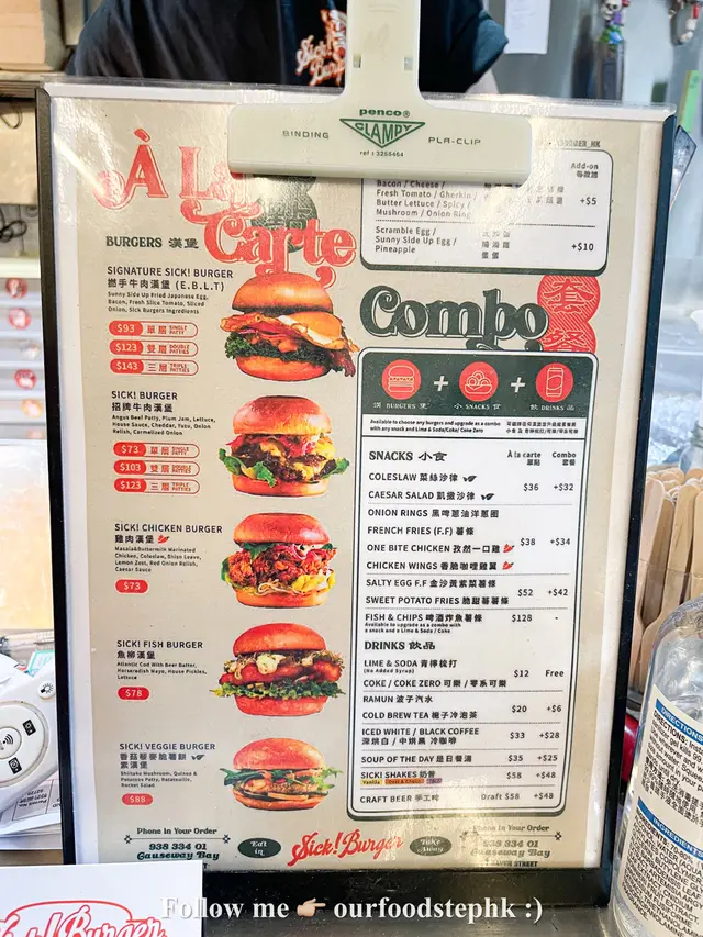 銅鑼灣希雲街有一間主打Burger的小店裝修風格頗有特色,以美式復古風為主題當中在很多細節位加入港式懷舊元素使得門面和室內環境都幾特別‣ 撚手E.B.L.T ($93)這是餐廳的Signature Burger當中最特別式加入了雞蛋配料也很豐富,包括牛肉、煙肉、雞蛋等所以吃起來會比較濕潤,感覺不錯‣ Sick Burger ($73)這是招牌牛肉漢堡,吃起來就比較乾身(相對來說)‣ Onion Rings ($34)洋蔥圈好大一個外層是用了黑啤酒處理所以顏色跟平時常見的有所不同‣ 阿華田朱古力奶昔 ($48)奶昔是混合了朱古力和阿華田表面有阿華田脆脆和棉花糖賣相一流,甜度適中兩者配合得很好,好喝☺️‣ Draft Beer ($58)啤酒麥味比較輕,甚至有點甜甜的感覺整體覺得是容易入口的🍺💭 C͟o͟n͟c͟l͟u͟s͟i͟o͟n͟餐廳室內座位不多,午飯時間很容易爆滿室內裝修很有特色,值得打卡食物質素也屬於中上水平,不妨一試~💰Total: $306 ($153pp 已包括10%服務費)📍Sick Burger|@sickburger_hk銅鑼灣希雲街31號地舖 (到訪分店)馬鞍山鞍祿街18號MOSTown新港城中心(5期)地下G04號舖🚩更多同類餐廳 #foodstep_西餐 🚩更多同區餐廳 #foodstep_銅鑼灣 ⊂ 喜歡我的分享就收藏、點讚、關注吧❤️⊃📣想看更多美食推介 ☞ Follow @ourfoodstephk_ …Read More
