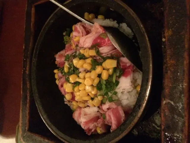見係你生日就豪請你食一餐!已經諗左成個月,唔知訂唔訂好,因為見FB comment 不是太好,怕你的生日留下不好的印象,但食物相片又真係好吸引,唔理了,就算唔好食都係一次姐。經OpenRice 早10日係網上訂位,十分方便,又可選擇係週年紀念日定生日。留言預定沖繩直送菠蘿金箔雪山作為生日蛋糕。當晚人流不算太多,可能已經8點多,唔洗痴住唔識嘅人一枱,太好了先order 一個30cm長的享丼丼$488再叫一杯水蜜桃香檳同熱抹茶果然與相片一樣,沒有取巧⋯⋯店員細心地解釋這個享丼丼點享用之後,我地就開始開餐啦