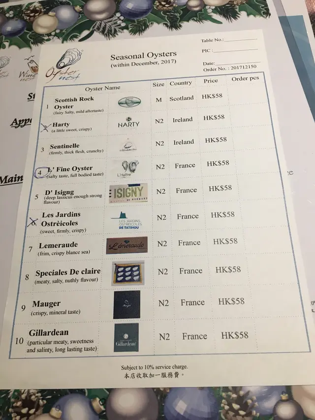 跟朋友預早慶祝聖誕節和她生日,所以book了紅磡九號水產的蠔窩入到去先知原來馬德鐘係其中一位老闆當日的dinner set menu 和生蠔list 由於當日set menu 的菜式不合胃口,都是散叫的好!餐廳有優惠是凡點了一支酒,可以用優惠價$10一隻生蠔,最多配三隻當日特價生蠔是4. L' fine oyster睇就大,但食落肉薄,幸好海水味夠濃但早知係咁,我會散叫其他meaty d嘅蠔種。點了兩個前菜焗田螺和蟹肉多士兩款都好好味,當中蟹肉多士啖啖肉,配上少許黑松露,提升不少食味!這個叫一半磨菇湯•一半龍蝦湯配一隻吉列蠔這個湯絕對是must eat item 先喝磨菇湯,菇味濃郁,質地幼滑干邑龍蝦湯是重口味之選!味帶回甘,配上吉列蠔是一絕!我的主菜是龍蝦意粉 正常味道,不過不失相反我朋友的欖油帶子意粉水準十分高,果然是隔離飯香!…查看更多