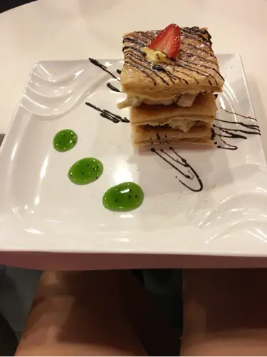 我十分喜愛吃榴蓮所以今次點了榴蓮拿破崙 這個甜品製作需時,差不多等了二十五分鐘不過為了吃甜品,等下都吾緊要!酥皮熱辣辣但吃起上來不會覺得油膩 口感鬆脆榴連果蓉果味十分濃郁 不過份量卻有點少如果多少少就好了…查看更多