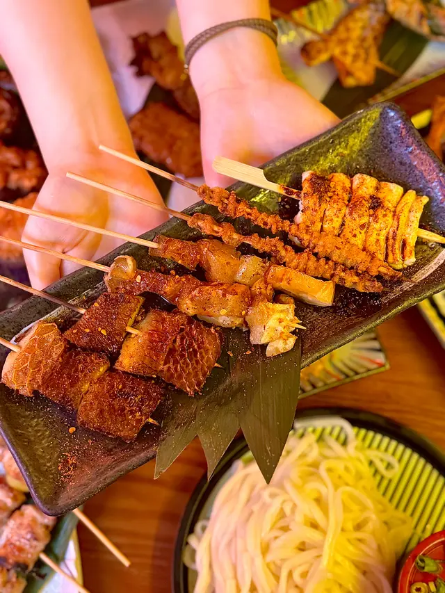 早排和多年不見朋友聚會食串燒飲返杯店內木系設計搭現柔和燈光,牆身擺放不同酒樽一整晚播放著廣東歌,相當熱鬧多款特色串燒和小食,最近推出自家製手工系列✾ 麻辣燒牛骨髓|麻辣燒金錢肚|麻辣燒牛筋串|麻辣燒牛胸油麻辣惹味,愈食愈辣!很過癮喜歡燒牛骨髓和牛胸油,前者入口Creamy軟綿後者充滿油脂甘香,爽而不韌✾ 燒豚肉荔枝卷|燒豚肉青蔥卷|燒豚肉青提卷三款豚肉卷都很清爽不油膩,特別是青提一口下去酸甜果肉爆開,✾ 麻辣雞腳筋|原味燒脆肉鯇魚|鹽燒雞皮紫蘇葉包蝦|炭燒雞肉串|炭燒豬肉串很特別有燒脆肉鯇魚,魚皮酥脆啖啖魚香喜愛鹽燒雞皮紫蘇葉包蝦口感豐富蝦肉吸滿雞油香且帶淡淡紫蘇葉清香✾ 燒烏頭魚肉質鮮嫩啖啖肉,帶點鹹香加點檸檬汁提升鮮味✾ 麻辣燒虎皮尖椒釀蝦滑|鹽燒冬菇釀蝦滑前者尖椒脆口香辣,蝦滑中和辣味滿滿蝦滑釀入冬菇中,爽彈多汁✾ 麻辣脆炸小酥雞|炸蝦餅|鹽燒雞皮餃子|溫泉玉子蟹籽燒蠔小酥雞炸得香脆可口,一口一件腐皮包著溫泉玉子和燒蠔,一口咬爆汁超Juicy✾ 鰹魚和風燒飯團|自家製手打冷烏冬飯團外層燒得焦脆香口,內裏還軟糯不乾手打冷烏冬彈牙有嚼勁,簡簡單單蘸醬汁就好✾ 檸檬茶酒香港特色檸檬茶變酒?!入口酸酸甜甜帶點茶香,酒味不太重輕易入口…Read More