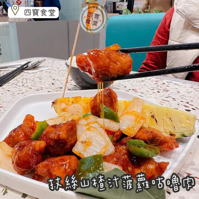 小豬又又又走左去將軍澳搵食啦🤣今次去左好近地鐵站嘅將軍澳中心,入面嘅一間餐廳✨『四寶食堂』✨四寶食堂食嘅野比較似茶餐廳,但係環境絕對比一般茶餐廳光猛同闊落!🌟今次一共叫左4樣食物,分別係👇🏻1. 扙絲山楂汁菠蘿咕嚕肉(+$28轉套餐跟湯同飯)呢個咕嚕肉真係做到扙絲效果🤤聽聞呢個仲係佢嘅招牌菜🌟但係好搞笑,佢嘅菠蘿原來唔係撈埋係d咕嚕肉入面,而係有一份新鮮菠蘿放左係咕嚕肉隔離,出乎意料!🤣🤣另外跟餐嘅湯都好足料,有淮山、蟲草花、排骨等嘅配料,個湯都好清同好甜😚不過我估計,個湯應該每日都唔同款哈哈😚2. 葱油豬扒拼炒蛋菠蘿油葱油豬扒都係另一個餐廳招牌菜🌟豬扒煮得夠淋,唔會太老好似咬橡筋咁👍🏻配埋香口嘅葱油,超惹味😋不過菠蘿油就太甜,而且菠蘿皮都唔夠脆,有待進步☺️3. 瑤柱鮑魚福建炒飯呢個係比到驚喜‼️蛋炒飯底炒到好香,加埋上面嘅雞肉瑤柱汁,味道真係好夾,好快就食到清碟🤣4. 馬拉棧炒芥蘭呢個就應該每間餐廳都唔會炒得難食,所以就唔評論啦🤣不過餐廳每日都有唔同時蔬,到時可以再問店員,當日有咩菜揀👍🏻今次去就試左晚餐,有機會會再去食,試下佢嘅早餐、午餐或下午茶😚📍四寶食堂 (將軍澳)將軍澳唐德街9號將軍澳中心1樓137E號舖…查看更多