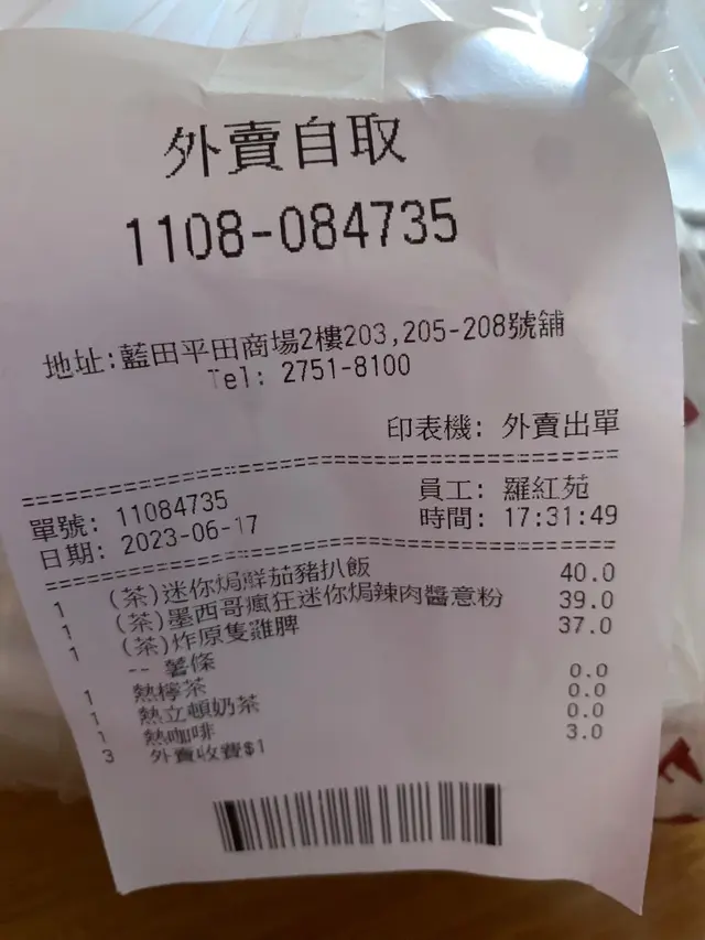 想起都有一兩年沒去了,就想想試下吧(平常到啟田商場那邊多)。五點多去到,見人不多(坐了四分一到三分一左右吧,點了三個下午茶,結果等了差不多半小時,收銀一直sell人買蛋糕,都冇理我等到變化石,門口入去個位仲有陣怪異氣味。而且回家後發現有一個餐是錯的(雞扒焗什麼變了肉醬意粉,怪自己等這麼久沒看清楚),味道就是一般餐廳的水準,肉醬意粉的意粉是帶辣味的,如果怕辣既朋友唔好叫,雞髀還好,薯條本身外賣就冇寄望過會脆(事實比我理像中好,起碼唔係勁林過種程度)反正我不會再幫襯了。…查看更多
