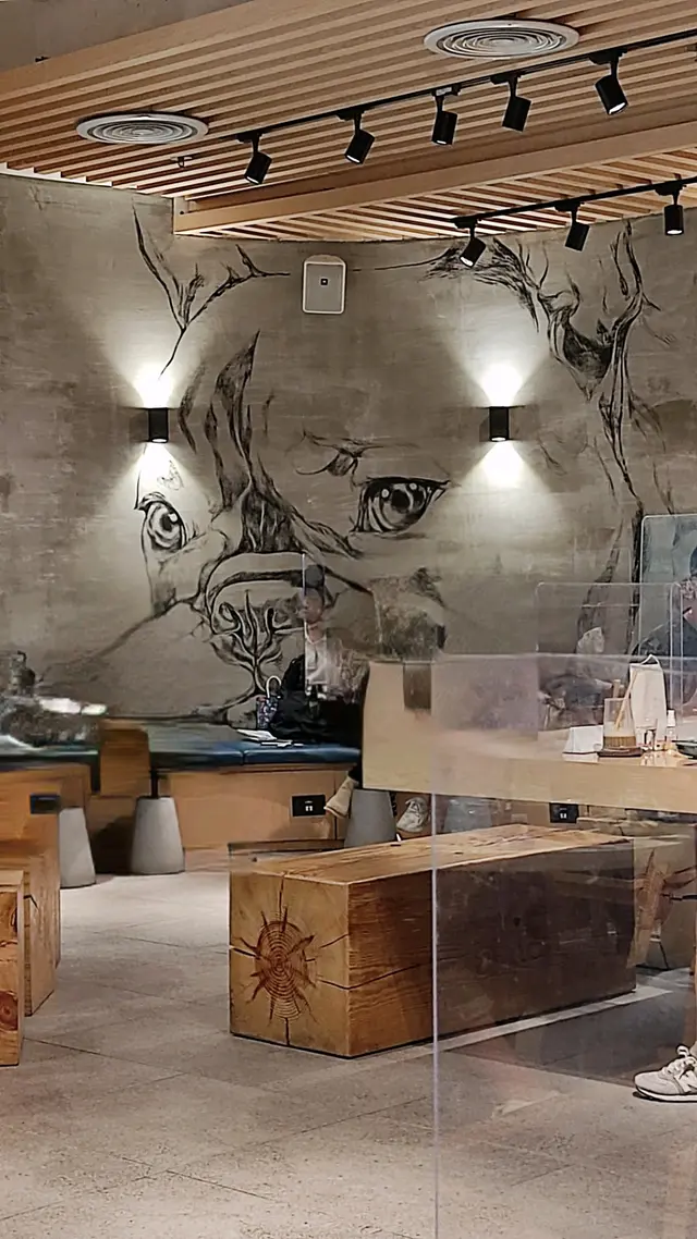 。食店裝修簡單、舒服、自然兩幅牆畫🐈和🐕都是必定要打卡的地方