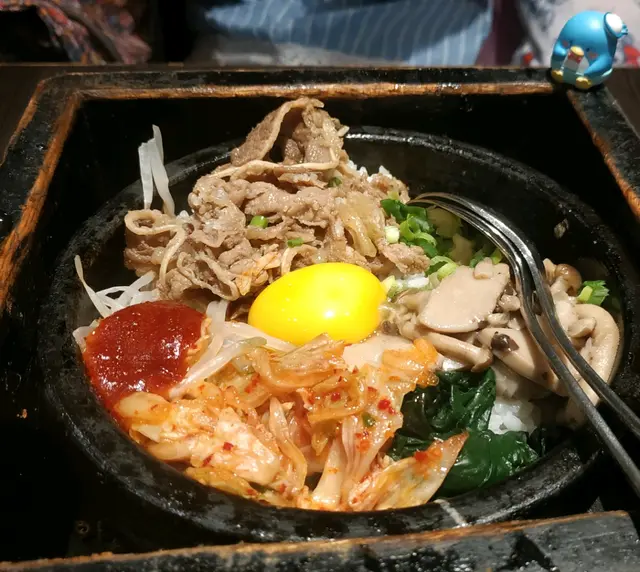 ,蛋黃呈橙紅色,蛋香濃郁,加上已調味的薄切豚肉撈飯,啖啖齒頰留香,令人心思思想快啲再食多次。🥕泡菜蘿蔔爽口唔會太辣非常開胃