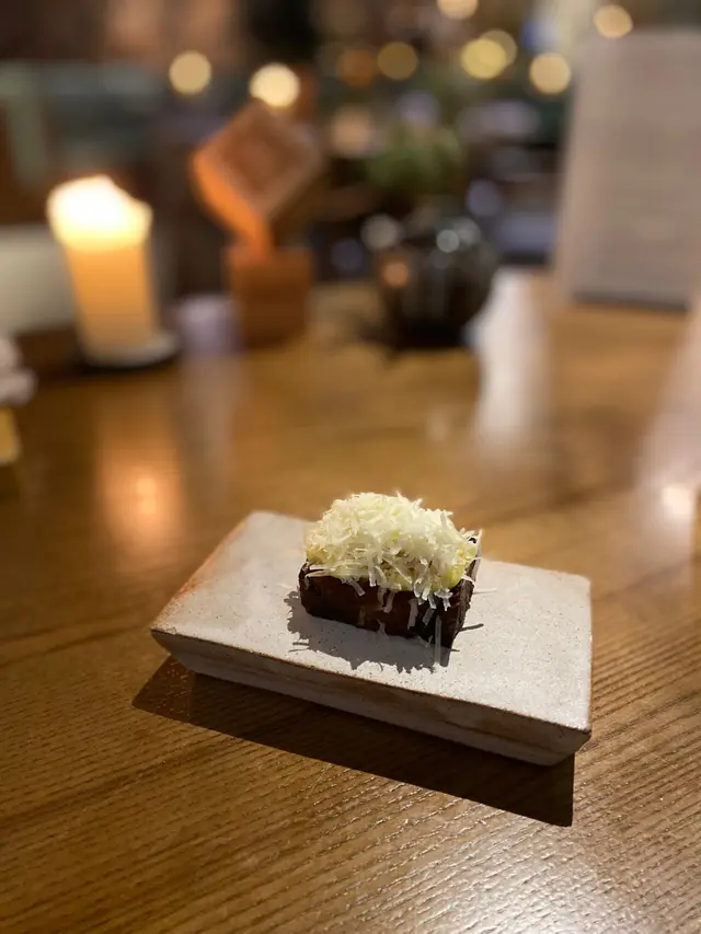 初時只係知道呢間食fine dining出名有誠意,去之前先知原來呢間係米芝蓮嘅綠星客廳🤩 自問自己都係奉行減碳減廢既人,所以食之前都對呢間餐廳好有期望😋 趁住肥肥生日又發掘下好餐廳先😚.Tasting menu ($1180) [有short tasting menu, 少左3個course, 其中一個係出名嘅truffle pudding. 留意14/2之後就唔會有short menu].服務真係⭐️⭐️⭐️⭐️⭐️waiter/ waitress 每道菜都好熱心介紹,個個都做足功課,有時我哋聽唔到/問仔細啲佢哋基本上都完美解答,對得住連續幾年攞米之連既質素.1. 🍒 Beetroot tartlet with whipped liver and blackberry 頭兩樣finger food一齊serve. Beetroot tart非常精緻,我同肥一度思考左陣個tart紙係食唔食得😂 第一口食落味度都幾酸,但好快就食到中間既肝mousse中和左,而撻皮係crispy脆片,bite size亦令到呢個咸食既finger food一啲都唔膩.2. 🍅 Chickpea wafer, smoked cod roe, lightly dried tomato. 連味道都好似dessert 既finger food! 用餐廳培植既小葉做top, 中層有幾片乾蕃茄,連埋smooth到似paste既白鱈魚籽,食落直頭似甜品。第一次具體感受到一口食物有幾個層次🤪.3. 🧈 birch sap glazed truffle pudding, berkswell 餐廳介紹呢個係佢哋嘅signature (其實識落覺得樣樣都可以做signature 😂) Berkswell cheese pudding, 食落去有啲似文華嘅French toast. Birch sap係一種甜甜地焦糖化咗cheese pudding既野. 面頭佈滿碎芝士,好啱我胃口,如果唔係得一口,我一定會攞埋肥肥嗰件😘{🍹beetroot | Lapsang souching | pickled cherry }第一杯pairing drink 出現了🥰聞落似beetroot. 飲落係有啲複雜嘅甜味. 信我真係甜既😂😂 立山茶我第一次聽,呢個茶底好。味🤩 對我來講有啲似一杯有beetroot syrup 既台式飲品 (肥肥話齋 我地真係好中意downgrade啲好食物).4. 🥩 ox in coal, caper jam, kohlrabi and sunflower shoots Venison 一個display 得好豐富嘅牛肉他他. 基本上每一道菜都有小葉用黎裝飾(小葉!🌱),喺呢度就唔詳細講。奶白色既係pickled蘿蔔,令到菜式嘅味道更加concrete. 第一次食tartare配開心果同埋南瓜籽,tartare有一層cold oil,而且餐廳用aged ox 去整,所以食落唔係嫩口/ 入口即溶既感覺,係有啲嚼勁{ 🍹Genmaicha | Yuzu }作為一個中意茶既人,每杯drink我都好期待😌玄米茶+柚子 聞落飲落都好smoky. 同牛係超夾. 雖然柚子中和到之後嘅custard,但因為佢帶acidity and sparkling,反而覺得呢一杯同seaweed Custard唔太夾.5. 🍮 steamed seaweed custard, trout roe, crispy black kale好creamy既custard,上面鋪滿魚子同埋炸脆既紫菜,開始有少少飽腹感 { 🍹Cold brew Rice Scent Puerh }冷泡普洱茶,有一陣米飯味😂 真心覺得好特別,中式茶我唔好普洱嘅原因係: 苦,但呢一杯給有驚喜.6. 🥦 fuseau artichokes buried in aromats, stout and ragstone呢道菜主角係grilled artichoke,display固然靚又有陳次,但我最鍾意既係旁邊嘅dressing, ie black Vinegar + black beer (stout) 既sweetness. (好難忘既味道,我忍唔住問咗佢waitress呢個sauce點整🤣)7. 🐚 Hokkaido scallop with fermented white asparagus, wild garlic oil (Supplementary $50) 喜歡帶子既我梗係要加呢$50啦😉 帶子刺身屬於超薄切(公道啲,大約1cm thick),上面諗嘅係Pickles jelly + garlic oil + 蘆筍炮製而成嘅汁{ no drink pairing }{ 🍹 Hami-melon, dried salted plum power }喺上魚前上左一杯飲品,完全就係哈密瓜同埋話梅組成既汁,甜大過酸,係開胃既感覺😚 .8. 🐟 butter poached grouper, heirloom sweet corn, shrimp sauce .9. Parker house roll with brown cultured English butter 有咩餐廳去到第九道菜先上包?佢哋介紹係因為麵包成日都俾人當左餐前吃,忘記咗其實麵包都係一道菜. All I rmb is they ar made with brown butter infused with yogurt ☺️9. Dry aged duck with smoked beetroot, aromatic herbs and elderflower vinegar可以話係成餐飯唯一完完整整見到嘅meat. The waitress said after roasting, the duck will be rested 12 hrs to absorb back the juice; other than the sauce on top, the Beetroot 係第三個層次. 可惜鴨同紅菜頭都唔係我特別fancy既食材,冇太大感覺.跟住就犀利啦,甜品唔知點解有三個😂😂.1. 🧁 tunworth cheese, fig jam, candied buckwheat and malt望落去包羅萬有,好似一個盆栽咁(如圖) 其實係雲集Coffee crunch, 一粒粒嘅Fig jam on the bottom, Cheese to add slight flavor and Lime jelly. 而隻碗呢,好似摸緊乾冰嘅感覺😂.2. bee pollen cake, mint and strawberriesMint bottom n pollen cake, 以士多啤梨汁襯托,中上層分別係Mint cream 同 a spoon of yogurt in vanilla flavor 3. 最後,係一粒好似金幣嘅caramel white chocolate moose. 有點甜😂.未計餐廳另外送咗一小件咖啡生日蛋糕俾肥肥,前後食咗四個甜品😛😛😛.另外兩杯non alcoholic pairing:{ Mandarin, ginger, honey, apple cider vinegar }{ Green pear, vanilla, ginger, nutmeg, clove, star anise }.遲咗好多先完成呢篇食評…呢半年各方面都好似有啲不一樣,食得平淡左😂 如果有機會,好想再同肥食多次3.5個鐘既晚飯,再逐杯嘢飲逐碟嘢食欣賞,傾過去傾將來.總結,算係我咁大個女食過最講究嘅一餐,味道服務環境幾乎無懈可擊,慶幸揀左你生日一齊去💕…查看更多