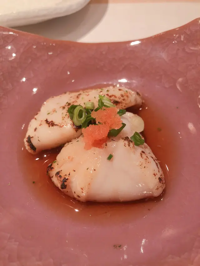 朋友升職約左食飯慶祝,諗左好耐食咩好就不如試下廚師發辦啦,可以一邊慢談一邊享受美食同醇酒! 來到灣仔一間新開餐廳,餐廳環境簡約風,牆上掛左一幅畫,上面有個四字 <一握入魂> 今晚omakase 就由 一握入魂 開始:首先,師傅先上前菜:果茄、柚子蘿白、湯葉、黑棓貝果茄鮮甜、柚子蘿白好爽口、湯葉即係新鮮嘅豆腐皮、黑棓貝季節限定然後最愛既刺身:真鯛白子 赤貝 鮟鱇魚肝真鯛魚既精子,只限春天先有,口感幾特別 赤貝 好爽脆 呢個係貝殼類中我最愛!鮟魚肝 口感似鵝肝咁 食落有入口即溶嘅感覺一握入魂 手握壽司 帶子海膽夾紫菜 赤鯥 大拖羅 馬糞海膽有口感帶子火槍燒過令到帶子嘅油融入海膽同紫菜,超正啊!赤鯥同大拖羅都係價值好高既食材,係日本都唔係每個人都有機會食到!拖羅更加唔需要講,魚油極香,師傅仲係拖羅上沾左自己秘制既醬汁馬糞海膽來自北海道,好creamy之餘仲帶有海水味,即係代表超新鮮!吞拿魚蓉手卷 好多料 吞拿魚蓉配香蔥 食落絕對唔會溜鯛魚湯 師傅話由七種唔同鯛魚炮製,魚鮮味超濃,中和返食完壽司既味蕾最後一道甜品,今日有靜岡出產既蜜瓜,師傅都話呢個季節既蜜瓜係最多汁多水 令成餐晚飯完尾劃上句號!黎到尾聲,我非常想知道 <一握入魂> 的四字真言,師傅亦解釋左我聽:師傅做每件壽司都係經自己手去握,將畢生所學既技術、同心機去放係每件壽司上,就好似將自己個靈魂注入左件壽司到!…查看更多