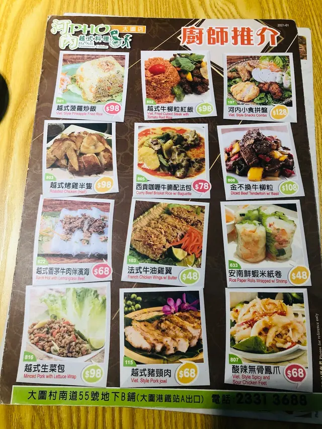 好耐無食過越南野,近近地去左大圍港鐵站對面既呢間河內越式料理。叫左一碗河內生熟牛肉湯河粉、香茅豬扒湯河粉。加29蚊追加左一個越式炸蝦餅小食。我叫左杯椰果果肉西米露,而我朋友就叫咗一杯青檸梳打。枱面有用黎點律肉嘅越式醬,辣醬,同食撈檬用嘅酸辣汁。都幾齊,食越南野最緊要係呢啲配料嘢食好快就黎到,先係一碗牛肉湯河粉,望落去見到有好多配菜,而且牛肉都唔少,冇幾耐之後碗豬扒河粉都到咗啦。香茅豬扒係另外一隻碟上,份量算大份,同埋望落去係見到炸得幾靚。開始食嘅時候,先至發現原來佢啲河粉嘅份量係好大份,普通女仔應該未必可以食晒成碗。另外佢有每碗送一份青檸同埋辣椒碎俾我哋加落去河粉度。食物整體水準非常唔錯,佢炸蝦餅尤其出色,炸得啱啱好,亦都唔會太多粉。食晒成碗,加埋小食,加上我叫既西米露,成到好飽好飽埋單計落都幾抵食,最後發現原來佢哋有飯類嘅野食,下次可以試下!…Read More