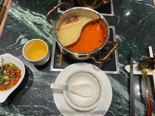 入到去餐廳,仲趕得切見到日落同維港既景色,非常之靚。餐廳室內環境非常光猛同埋新淨。座位亦十分舒適同寬敞。最估唔到係呢度呢仲個大嘅projector 播啲k歌 勁開心!我哋叫咗三款湯底,分別係麻辣、養生滋補藥材湯、豬骨湯麻辣湯底唔會太油,亦有10分香嘅麻辣香味。養生藥材湯味道好鮮甜,有好香濃嘅藥材味。豬骨湯同普通火鍋店嘅味道都差不多。所以比較推薦嘅係麻辣湯同養生藥材湯。由於我哋都有啲肚餓,所以我哋叫咗份羊肉串同埋小酥肉。賣相同埋擺盤都好靚。羊肉識落有好香嘅香料味之餘,羊肉亦10分鮮味。我地兩個人叫左超多火鍋配料其中最鐘意係醉雞!感覺上醃左唔少時間,酒味好濃,配埋個湯底岩岩好。肥牛片同羊肉片都好有肉味,亦唔會好Un最得意係佢個蝦滑 整到好似心形咁!味道來講就覺得墨魚滑好食啲 整體來講都好滿意 下次有機會再嚟呢頭就會再食呢間!…Read More