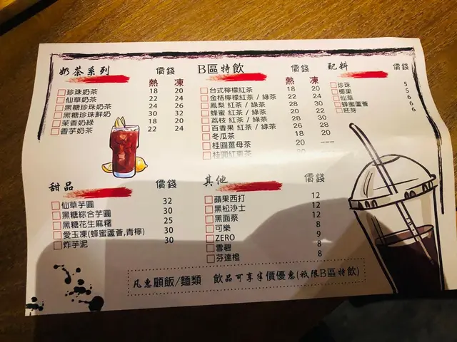今日黎行完觀塘工廠區,順便係度食埋野。咁岩行到呢層,而且我同我朋友都okay 想食台灣野,所以揀左呢間日月堂。入到去既裝修都好台灣,以台灣既風景同特式做背景。同埋掛左d 台灣既名信片係牆到,攪到我地都好想快d 可以去到台灣旅行。而佢樓底好高同埋枱與枱之間都隔左好遠,所以坐得都好舒適。我地好快揀好之後店員就行過黎同我地落單。我地叫左兩個主食,兩份小食同兩杯飲品。飲品最快上,分別係珍珠奶茶同香芋奶茶。兩杯味道都唔錯。特別係香芋味,好香濃,如果中意香芋味既話就岩晒。第一個主食係麻辣鴨血冬粉。食得出佢唔係將冬粉同麻辣鴨血分開煮再放埋一齊。冬粉係煮既期間吸晒麻辣既香味。鴨血亦好有口味,好實淨。加上有好香濃既花椒味。十分唔錯另一個主食係紅燒豬腳拌麵。豬腳好 Lum, 煮得好入味。麵既軟硬度岩岩好,食到一半加左辣椒油更加好食。 小食方面我地叫左玉米起司蛋捲餅。賣相好靚,而且夾起上黎係有拉司(睇相),幾正。而且每一擔都有食到玉米芝士。另一個係梅子地瓜條,上碟既時岩岩炸好,調味粉好夠好均勻,炸到岩岩好,條條到金黃色。對上一次食到咁好食既地瓜條都係前幾年去台灣。。。整體十分唔錯,會再黎食多次!…Read More