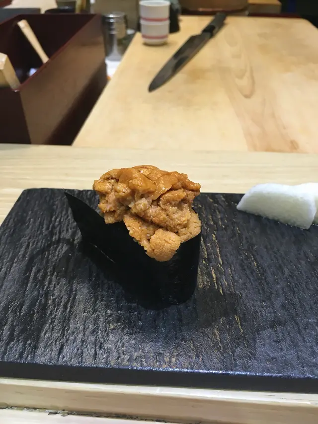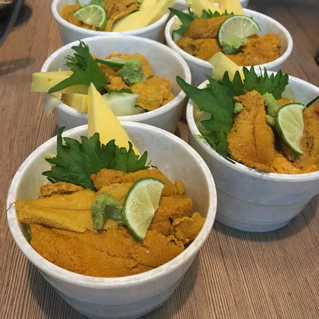 細膽鬼 御前大江戶日式料理 2016-04-13lunch time 專登去試食海膽飯一眾同事對海膽飯既poster 深深吸引左上到餐廳,限量海膽飯仲有得叫,我地一行9人叫左6個細海膽飯。聽waiter講會夠食一來來左雞軟骨串燒,炸得脆脆地好味 到海膽飯上到,一眾嚇左一跳細海膽面層大慨有四塊加拿大海膽,下層飯都算細,女仔都未必個個夠食但海膽非常鮮甜,入口即溶。可惜飯仲係暖。價錢連飲品$97,算有少少貴。…查看更多以上食记乃用户个人意见 , 并不代表OpenRice之观点。赞好分享細膽鬼 御前大江戶日式料理 https://s.openrice.com/QrLT063Cd00检举 张贴 评分4味道3环境3服务3卫生2抵食用餐途径堂食