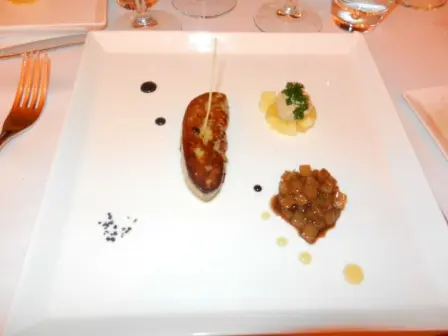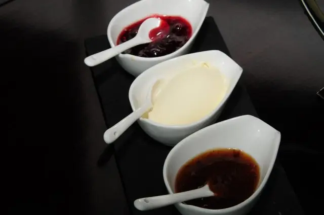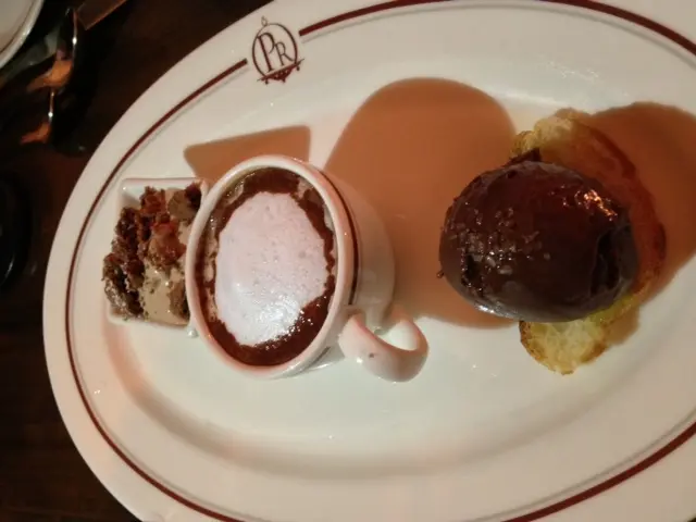 istachio Creme Brulee & Biscotti Trio De Chocolat,White Chocolate Mousse,Chocolate Latte & Salted Dark Chocolate TruffleVerrine Mascarpone Au Sorbet De Fruit De La PassionPear Tarte Tatin Pistachio Creme Brulee & Biscotti 法式燉蛋配上開心果, 燉蛋的蛋味很香濃,甜度剛好,開心果味道雖不太突出,但配上開心果杏仁脆來伴吃燉蛋,很有特色! Trio De Chocolat,White Chocolate Mousse,Chocolate Latte & Salted Dark Chocolate Truffle朱古力粉絲一定大愛這款甜品,有香滑的朱古力慕絲,中間是熱朱古力奶泡咖啡還有海鹽黑朱古力,每一款都嚐得出濃濃的朱古力味道! Verrine Mascarpone Au Sorbet De Fruit De La Passion香蕉蛋糕配上芝士忌廉,上層慢慢滲入野莓果醬,香蕉和野莓的配搭,甜中帶點點酸味,令人一試愛上! Pear Tarte Tatin梨撻以整隻梨肉來烤焗,十分重料,酥皮極鬆脆,甜味適中,多吃了也不會過飽!…查看更多