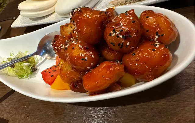 有驚喜的素食店 東方素 2023-01-17想搵一間近去看舞台劇的地方吃素上網找到這間,吃完之後很有驚喜,一定會返去再食。上網見到評語很好,便選擇很多人點的菜式我們三個人點了四個餸。蜜餞叉燒包,我相片一點都不吸引,但食落去係非常好味道。另外咕嚕肉,超級好吃,我覺得比起真正的姑娘用還要好吃。另外叫了一個淮山炒蔬菜,用了非常新鮮。最後一樣係素翅,唯獨這個稍為遜色,味道好像添加了醬油味還是什麼味吃不出來。我們大約六點回到都未有太多人只有一張枱彈走的時候7:30左右已經坐滿了。這間是我吃過素菜之中,都算很高分的值得再去👍🏻👍🏻⭐️…查看更多以上食记乃用户个人意见 , 并不代表OpenRice之观点。赞好分享有驚喜的素食店 東方素 https://s.openrice.com/QrLT0Atr700检举 张贴 评分5味道3环境4服务5卫生4抵食推介美食咕嚕肉蜜餞叉燒包淮山炒時蔬用餐途径堂食