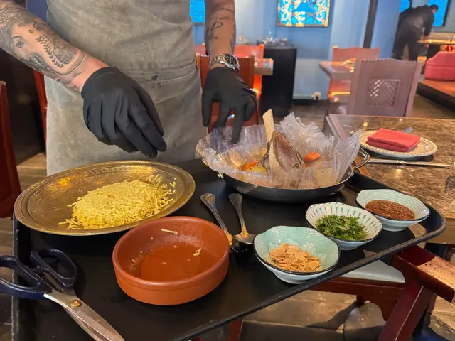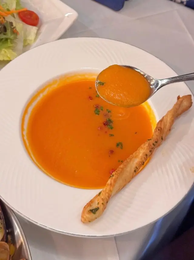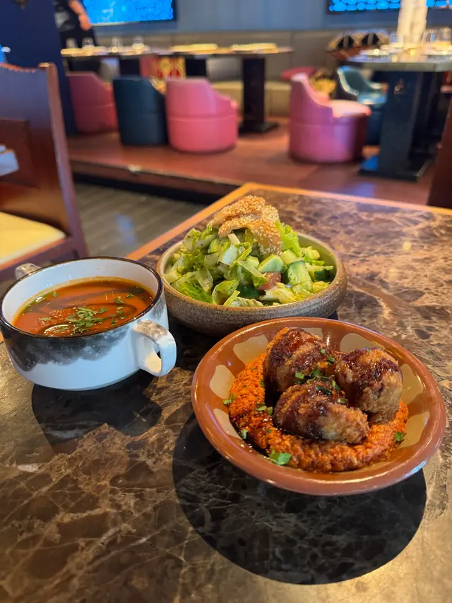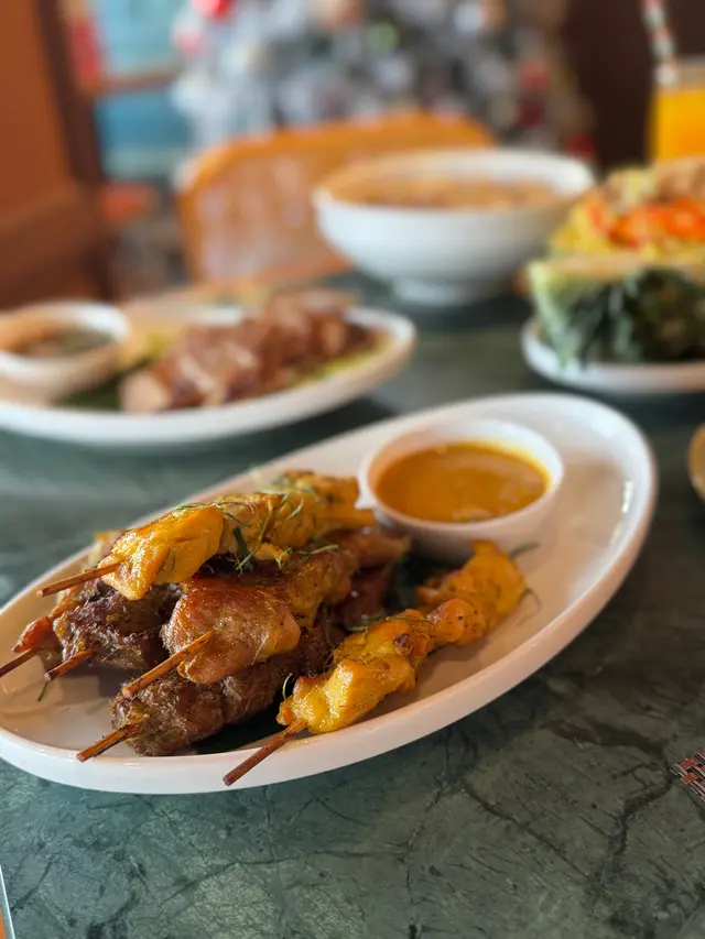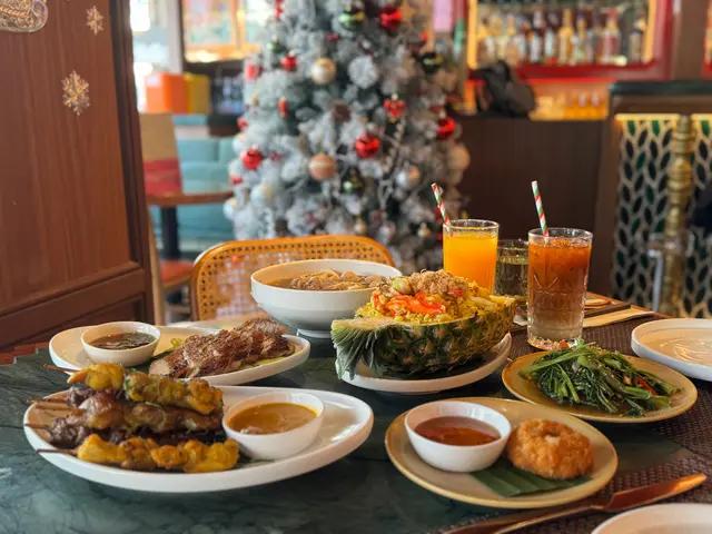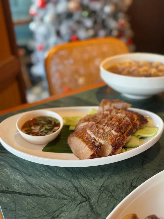 聖誕未到,尖東已經四圍都係聖誕裝飾🎄,行到見到一間好有聖誕氣氛嘅餐廳——Ruên Thai & Vietnamese,主打泰國同越南菜。見到午市咁多人,特登入嚟試吓😋午市套餐可以用優惠價加配多款小菜同甜品,選擇好豐富~我哋試咗:⭐️牛肉船麵湯(午市套餐)湯底濃郁帶香料味,配料有牛肉同牛丸,份量都唔少;粗河粉軟滑彈牙,湯汁融入河粉中,好入味⭐️菠蘿炒飯喺泰國餐廳最鍾意點菠蘿炒飯,但通常啲魷魚都煮得比較老同韌,呢間餐廳嘅魷魚令我非常驚喜,軟熟而且彈牙,整得好好!配料豐富,下次再嚟會再encore👍🏻👍🏻👍🏻⭐️豬頸肉好厚肉,份量好足,燒得香口,肉質嫩滑,帶少少焦香,豬頸肉油脂分布均勻,咬落有嚼勁⭐️馬拉盞通菜(加配小菜)炒得香口惹味,通菜爽脆,馬拉盞鹹香突出,不過可能因為係一人套餐加配,所以份量相對較少⭐️芒果糯米飯(加配甜品)芒果甜美清香,三色糯米軟糯,口感煙韌但唔會太黏,加埋椰漿,甜而不膩⭐️自家製芋頭雪糕(加配甜品)真材實料,食落有少少芋頭顆粒,第一次食到咁真實嘅芋頭雪糕🍨真係幾驚喜Ruên Thai & Vietnamese (尖沙咀)📍尖沙咀麼地道66號尖沙咀中心地下G38-G39及G45-G48號舖…查看更多
