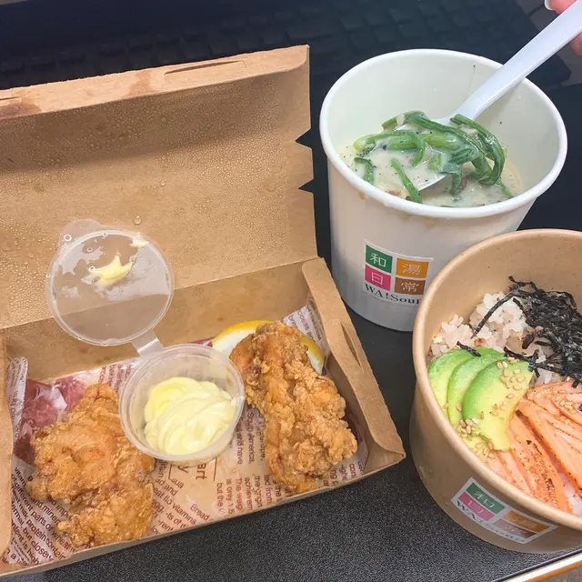 有日想飲湯 係deliveroo見到和湯日常就試左壽喜燒湯 超多料同牛肉 但覺得穀物飯團麻麻 今次試忌廉蘑菇湯面配牛油果燒三文魚穀物飯 穀物飯雖然健康但完全冇味 麻麻地 再加左份炸雞 一份三件 太肚餓食左件先記得未影相 上次試過佢地個炸雞 超嫩滑juicy 今次再encore都冇失望顺帶一提兩次點佢地嘅湯送到嚟都有啲瀉 好彩今次冇好似上次咁倒瀉到一路行一路滴…Read More