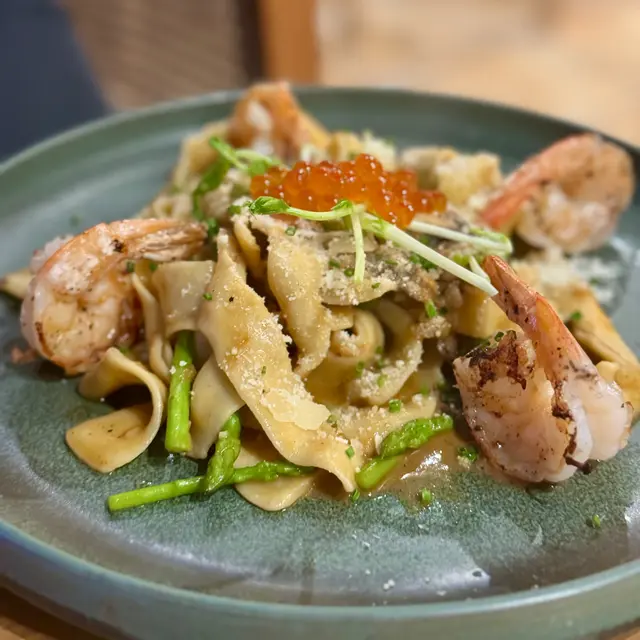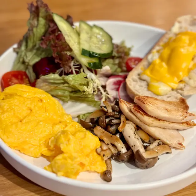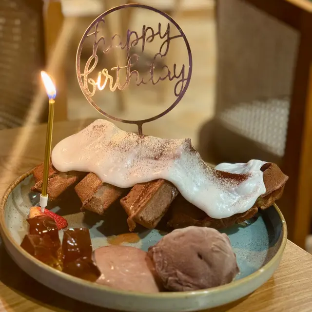 落地玻璃,簡約木系設計,環境好舒服~必食signature嘅窩夫!🔸All day breakfast $98慢煮雞胸肉|黑松露日本本菇|炒蛋|自家製烤芝士酸種麵包好難得有一個全部食材我都食嘅all day breakfast!雞胸慢煮完再微微煎下,好香好好食🤤一啲都唔「鞋」鍾意將本菇、炒蛋、麵包夾埋一齊食如果烤芝士可以多啲就好😌🔸龍蝦汁配大蝦三文魚籽手工義大利寬帶麵 $188好濃龍蝦汁味寬帶麵厚薄度適中,有咬口(超怕太厚嘅寬帶麵,食落好粉咁)煎蝦有簡單調味,爽口彈牙🔸海鹽焦糖比利時朱古力麻糬窩夫 $168甜品令成個dinner嘅滿足感提升超多仲可以加生日牌&蠟燭拉麻糬打卡able窩夫外脆內軟朱古力好好食!濃而不甜❤️…查看更多