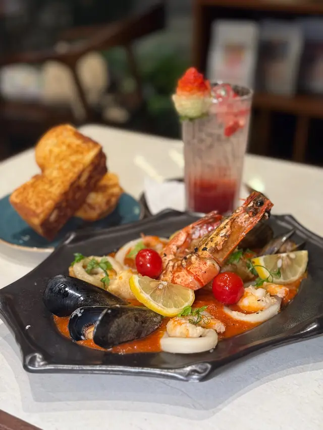 竟然俾我搵到一間上環嘅英式風格中菜餐廳,啲裝修幾特別,好有英倫feel,又帶點中菜嘅感覺,簡直可以叫Cocktail 🍸。一路食中菜都覺得幾chill,外面仲有露台可以飲酒傾偈,真係好舒服 😌。今次我同朋友黎,不如試下佢哋嘅商務午餐,聽講招牌豬扒飯特別好味,於是就叫咗一份。上嘅第一樣就係豬扒,外脆內軟,口感真係超Juicy,底下配嘅炒飯仲有一層濃郁嘅中式蕃茄汁,味道簡直好正!上菜嘅時候仲熱辣辣,真係即焗,豬扒上面有芝士,拉絲效果勁好玩 🧀🔥。個例湯就更好喝,係蘋果雪耳煲瘦肉,清甜得來又足料 🍏。另外,我仲叫咗兩杯mocktail,分別係lychee & mint同blueberry seltzer,真係好refreshing,飲落去超開心 😍呢個地方真係唔可以錯過,招牌豬扒飯真的必食,整體來講都係一個舒適又美味嘅享受!…查看更多