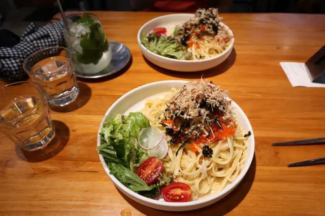 今日同朋友來到尖沙咀附近行街,見差唔多食飯時間就入左呢間主打日式甜品嘅“宏“,不過我地食佢嘅套餐就已經好飽好滿足。朋友叫左個蝦天婦羅海藻烏冬餐,天婦羅外脆內裏都鮮脆。佢話數量又滿足天下間的大食男士,無可挑剔。服務態度五星級的水準,因為當發現套餐冇味增湯,服務員即刻送左一碗俾佢,朋友既弱小心靈即刻溫暖番好窩心好驚喜。另外我叫左日式海鮮意粉+日式餃子,餃子的味道都係超一流的水準,脆而不膩,讚!意粉可以再淡少少就好,不過帶子同蝦都算大隻。總體來講幾好食。另外我哋仲有額外送嘅一口甜品,柚子蛋糕同朱古力慕絲。價格相宜,完美的一餐,有機會會再次光臨。…查看更多