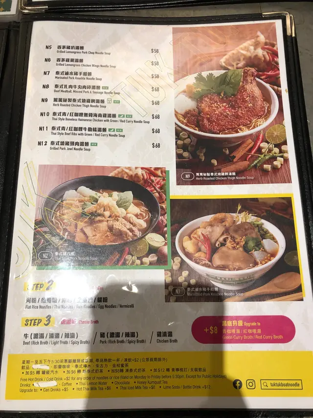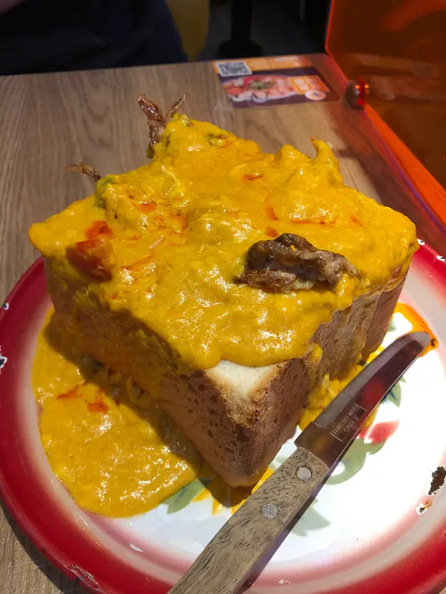 今日約左朋友去食位於大角咀食泰式野, 係奧運站行過去都要D時間, 大約10至15分鐘左右。入到餐廳覺得裝潢都幾有特色, D卡位係模擬緊泰國D篤篤車,同牆身都掛左D波衫係到做裝飾, 都幾特別, 好有泰國feel。坐低之後我同朋友都煩惱緊食咩好, 因為呢間餐廳D食物款式都頗多。經過一番討論之後, 我地叫左三樣野食同兩杯野飲。 芒果芝士沙冰同火龍果芝士沙冰兩杯野飲都係用新鮮生果整成, 飲落有滿滿既生果香味, 而甜味都岩岩好, 加埋芝士奶蓋飲完好有滿足感。炭燒豬頸肉平時係出面食D豬頸肉又貴份量又少, 但係到食份量好足夠 而且又好食, 加埋用蠟燭一路加熱, 打卡影相一流。香葉肉碎炒飯呢個炒飯真係真心好食, 炒到有香葉肉碎既香味又辣辣地,食得好過癮,師傅有功架, 而且呢碟炒飯份量都好足。招牌焗黃咖喱麵包軟殼蟹食埋呢舊磚頭真係飽到一個點, D軟殼蟹浸落香濃既咖喱入面, 而麵包索晒咖哩汁,非法惹味, 咖哩汁唔算辣,帶有少少甜用椰奶香。…查看更多