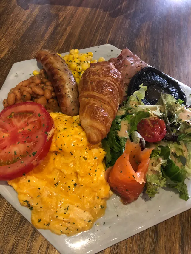 裝潢超級有風格,未食已經俾環境吸引。淨係all day breakfast 已經有好多款,會有選擇困難症。無論welcome drink, 餐湯,all day breakfast 連飲品,都超!級!好!味!牛角包好鬆軟而且好熱、蛋好香滑,菇好入味,茄汁豆味道好好,好有驚喜。哩杯朱古力一定要試,香濃得黎一啲都唔rich👍🏼👍🏼👍🏼👍🏼👍🏼…查看更多