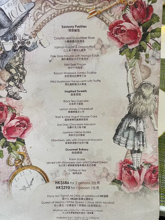 閨密談心之選🥰 簡 • 味 2021-05-14試左 Simplicity簡·味以愛麗絲夢遊仙境為主的《Welcome to Alice Tea Party》童話式下午茶,搭配故事中的角色,將兔子先生、瘋帽子、懷錶、紙牌人毛毛蟲等造型融入整個下午茶。我哋 3人行, book 左二人+一人set, 因尾段時間full booking, 所以我哋唯有食12點, 當個 brunch。食12點的原故,所以周圍環境都少人,可以周圍影下相首先佢都有個staff 介紹下有甚麼飲品, 可先order 埋飲品。按道理都係先食咸點之後先甜品, 同先淡後濃, 我哋就跟左menu 個次序食Menu 如下:- 迷你牛肉漢堡:- 黑松露野菌法式酥盒:- 紅茶杯子蛋糕:- 伯爵巧克力馬卡龍:咁通常呢D high tea 嘢, 大家都唔好預食物質素太好食, 但打卡影相同閨蜜談心就的確係好選擇!❤《Welcome to Alice Tea Party》下午茶❤ 價錢:$586 (二人用) ,$298(一人用)…查看更多+ 6以上食評乃用戶個人意見 , 並不代表OpenRice之觀點。讚好分享閨密談心之選🥰 簡 • 味 https://s.openrice.com/QrLT02KqyW0檢舉 張貼 評分3味道5環境5服務5衛生3抵食用餐日期2021-04-17用餐途徑堂食人均消費$298 (午餐)