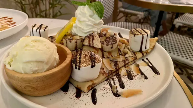是日到元朗駕駛學院學車後,約左老婆大人去元朗行街食飯。老婆望完一輪openrice 之後決定帶路去雞地食飯。可能因為雞地好多整車店,一直俾我一種粗獷的感覺。以為係打邊爐等等的地方。估唔到呢間INN 又俾到一種好清新的感覺我。INN 舖位係正大街上,加上門面充滿植物的設計,非常吸睛!餐廳內不算太大,但高樓底,加上以白色作主調的裝潢。一點焗促的感覺也沒有。餐牌的選擇也不少,單是意粉、飯和扒等主菜選擇也有10款。因老婆大人怕食兩個主菜太豐富,她點了一客小食,而我就點了香煎牛油波士頓龍蝦牛肝菌意大利飯和她一起share。意大利飯醬汁Creamy 而且滲透出濃濃菌香。龍蝦肉彈牙爽口,調味和火候剛剛好。最驚喜係餐廳會將龍蝦箝拆殼等客人唔洗好狼狽咁整黎整好!啖啖肉,好食。頭先有提過老婆大人驚太豐富,所以無叫主菜!就係因為佢見到d班戟吸引,所以點了一人一客做甜品。我就點左 榛子朱古力、香蕉、棉花糖、忌廉,加左$10配多舊雪糕。雖然雪糕好邪惡,但個人覺得一口雪糕一口班戟先正。班戟料豐富,我覺得自己食左兩條蕉而班戟皮也沒有一般粉粉的感覺食得出有蛋香。平時飲開Latte,見到飲品有杯叫Flat White於是叫左杯試下,原來兩杯係表兄弟!Flat White質感順滑,唔會飲到成口泡咁。咖啡香濃度適中,我自己就無加糖!奶香已經會幫手中和咖啡的微酸苦。唔錯唔錯。整體來說,是日晚餐同帶女仕黎食一定鐘意。估唔到雞地都食到平時大型商場先食到ge 氣氛同質素。…查看更多