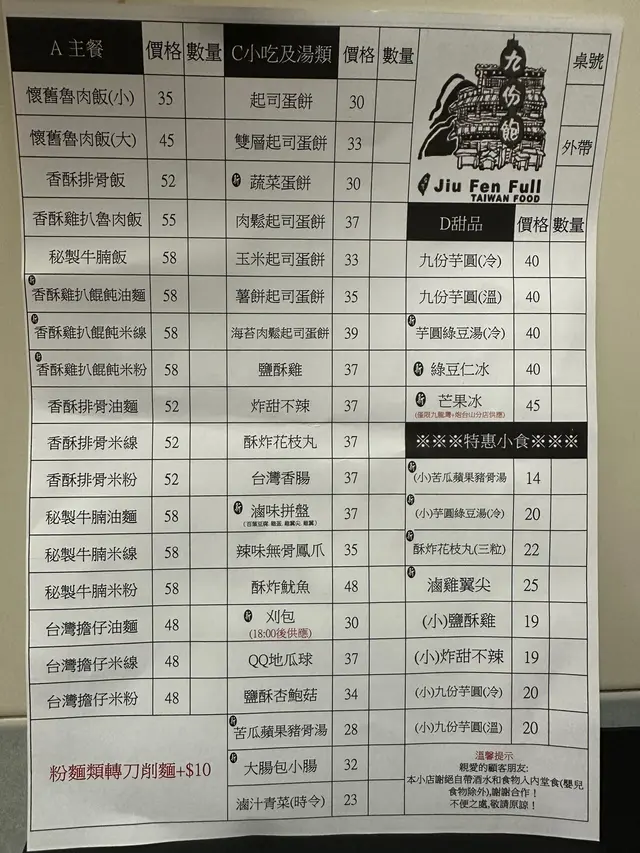 好吃的台灣菜 九份飽 (淘大商場1期) 2025-10-17常常都食既香酥排骨飯,米粉都好食,近排仲覺得佢個芋圓都幾好,價錢都唔貴,最緊要食過幾間,依間嘅味道,我覺得最似。可以選擇嘅仲有香腸、花枝丸。update咗最新嘅價錢…查看更多以上食记乃用户个人意见 , 并不代表OpenRice之观点。赞好分享好吃的台灣菜 九份飽 (淘大商場1期) https://s.openrice.com/QrLT0kjPU00检举 张贴 评分5味道5环境5服务5卫生5抵食用餐途径外卖自取
