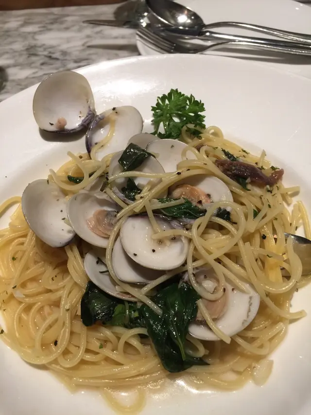 這天朋友相約到上環 00 意大利餐廳飯局, 這是我第一次到訪梗係要試這裏最馳名的Pasta 同 Grilled USDA Prime Ribeye 頭盤炸天婦羅法國生蠔配黑松露蛋黃醬及菠菜忌廉茸。一口吃下去蠔邊香脆蠔肉的鮮甜,加上黑松露和菠菜茸令蠔味更突出,更多味道層次。頗大的紐西蘭蜆清甜無沙,混埋醬汁一齊,散發陣陣新鮮香味。意粉吃起來煙韌帶清淡。 西班牙大紅蝦意大利粉,蝦肉又厚又彈牙,伴入XO醬和00意大利粉,啖啖都充滿煙煙韌韌。登登登登終於來到主菜,是餐廳的Signature Dish,肉眼牛扒配牛骨髓,賣相非常吸引,牛扒肉質鮮嫩,充滿肉汁,外層燒得帶點香,如再加上牛骨髓和蒜蓉牛油同吃,牛肉味更覺濃郁,口感非常好。…查看更多