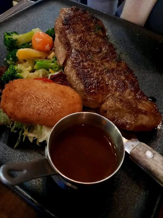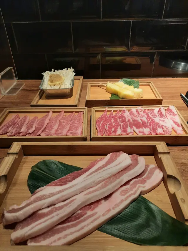 A4和牛肉眼上蓋:油脂多,輕輕一烤滿口油香Prime牛小排:肉味濃郁,厚度適中厚燒橡果黑毛豬:至愛厚燒豚肉,有咬口肉類我選自行調味,簡單塗一點點鹽吊出鮮味另外點上三款醬汁(日式甜辣醬,日式醬油,蒜蓉) 已經十分美味總共嗌左2牛1豬2菠蘿1金菇1牛油果沙律 牛肉汁飯還有2汽水兩個人埋單405抵食…查看更多
