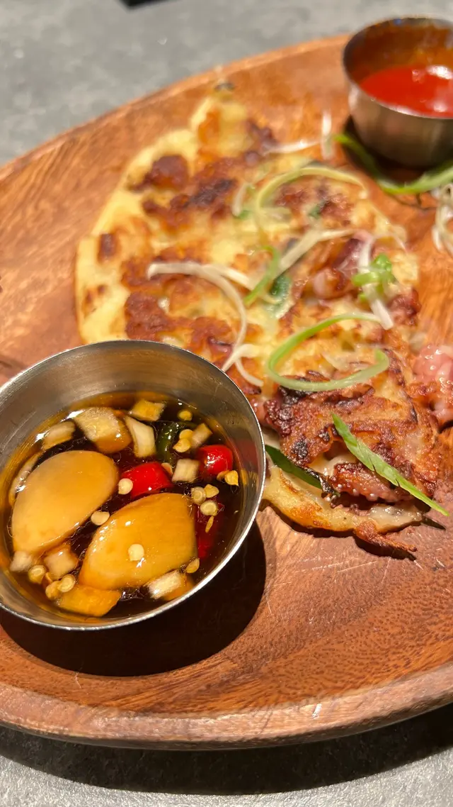 謝謝朋友推介,實在意外驚喜。不枉我開會完8點幾都趕過來搵你開飯。趕到來你已點了薄餅,老實說,我從未試過吃韓式薄餅🤪🤭第一次咁就⋯⋯原來幾好味喎!另一驚喜就是白切五花腩,估唔到一點也不肥膩,非常入味!最開心是拌碟的蝦仔任添,適合我這些愛吃前菜的人。不過一定要包生菜,可以解油感。飲品很青瓜🤣🤣🤣遠遠都聞到清香,適合燥底的我。甜品也不錯!如果不是已經飽咗,我一定會獨食一個。最後謝謝你請客!🥰🥰🥰…查看更多