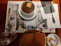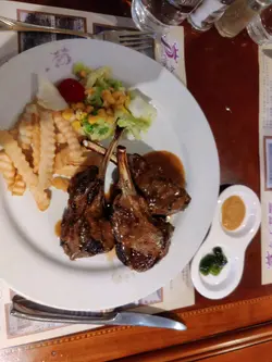 行花墟經過見到這間太子餐廳,之前行都無留意到有這間餐廳,覺得好神奇。跟住俾油鴨腿餐牌吸引住。又咁啱睇緊餐牌時有一對中年男女剛剛食完出嚟,稱好好食,咖啡好好飲,所以我哋都入咗去試,入去前已經決定想試鴨腿及羊架,坐低後就叫咗。還點了前菜田螺,湯方面還有洋蔥湯揀,另外再試埋羅宋湯。點餐時個男士應講嘢好細聲,感覺上無感情似的。像似AI人工智能人。點完後先嚟餐包,餐包暖的,但我嗰個包角位濕了,最怕這樣,只好切走一角罷了。羅宋湯比較茄醬味重,但我OK的,而洋蔥湯幾好飲,但如果有埋芝士在面就滿分。田螺方面正常,如果熱啲就更好了。羊架方面有3大件,夠厚,味都幾好。7成熟又唔會太老,都幾好,但配菜就麻麻,薯條凍的,配菜亦唔吸引。而鴨腿味OK,但如果皮可以整到脆就好,而且無汁的,如果有啲汁伴碟會好好多。甜品都是舊式餐廳啫喱,布甸,涼粉。咖啡俾剛才嘅食客吹大rm, 佢話好好飲,但我覺得正常嘢。我食完後而家先睇到話啲職員無禮貌,但我又無這情況出現,女職員好健談有禮,啲職員好勤力斟水,而且有個大年紀的職員更加同我哋主動介紹店入面啲得意擺設。整體當日來到這間比較舊式的餐廳食嘢,感覺很開心。如果羊架方面可以燒燶啲嘢味啲就更好。…查看更多