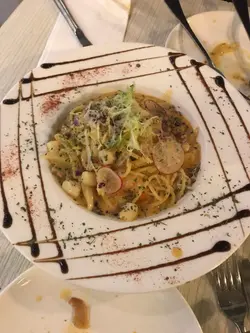 今日約咗一位住元朗嘅朋友食飯,佢就帶咗過嚟呢一間西餐廳。間餐廳細細,但係有嘅款式選擇都好多。我哋要咗個西班牙粟飼豬安架配薯菜,牛油果蟹肉忌廉意粉,仲陪咗餐湯同埋沙律。個忌廉湯好有驚喜,味道同出邊嘅忌廉湯比較唔同,呢度嘅忌廉味比較重之餘,啲湯嘢係手打嘅。個豬安呢啲肉都幾林,唔會有浸豬臭味。至於個牛油果蟹肉忌廉意粉,個忌廉汁好濃,個汁係廚師秘製手打嘅,所以都食得出同出邊唔一樣。飲品方面叫咗一杯凍朱古力,有一杯紫色夢幻特調飲品。環境方面雖然坐得唔算好舒服,但係職員態度都幾好,服務搭救。…查看更多