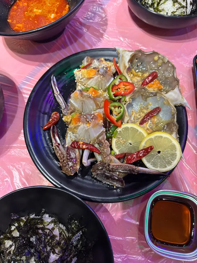 心思思想食醬油蟹但又冇時間飛韓國🇰🇷?幫緊你幫緊你~呢間韓式餐廳裝修 神還原左韓國街頭大排檔✨食物主打醬油蟹、韓式炸雞等韓國料理🧡🧡建議先點蟹乸 因為之後之後追加嘅部份都會係蟹公啖啖蟹膏好滿足~~~~仲有神仙食法蟹蓋撈紫菜飯💞醬油唔會太鹹 剛剛好 蟹肉飽滿鮮甜🤤🤤上菜速度都好快 一個價錢包晒咁多嘢 淨係食蟹都已經回晒本❗️其他任食餐單:➿排骨湯➿排骨麵➿炸雞➿年糕香腸串➿紫菜飯➿罐裝飲品旺角韓式放題 | 實現醬油蟹自由…查看更多