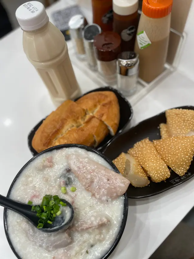 🤩生滾豬肚粥呢碗粥真係夠晒火喉!豬肚爽口彈牙,粥底滑到好似絲綢咁,瑤柱嘅鮮味仲提升咗成個味道層次,超滿足!❤️🤩黃沙豬潤粥呢碗就係重口味愛好者嘅天堂!豬潤夠滑,牛肉碎嫩得嚟又有少少嚼勁,仲有皮蛋同豬紅嘅香濃味道,豬紅入口即化,粉腸爽脆😋🤩豆漿好香濃,好似啱啱磨好咁,唔會太甜又唔會太淡,飲落去暖笠笠,真係好舒服~🥛🤩煎堆外皮炸得勁脆,咬落去香噴噴,內裡係滿滿嘅紅豆餡,甜而不膩,真係食一粒停唔到口!✨🤩牛利蘇咬落去層次分明,鬆化得嚟又唔會乾☁️…查看更多