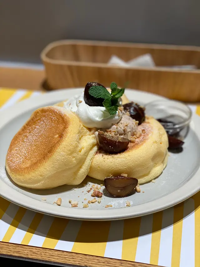 上次次排咗1小時15分先有位,今次等咗45分鐘就有位,感覺無咁痛苦😂 (雖然要等咁耐都係好無奈),重點係已經係平日下午嚟,其實佢全日無間斷都係排隊既,無耐性真係唔好挑戰,因為坐得低都重要等有得食,要食個pancake,等25分鐘係基本,鍾意食呢啲嘢既人應該唔陌生。有幸今次坐到窗口位,但係呢段時間應該慣堂落簾的,所以有冇景都無分別喇。我叫咗白朱古力草莓疏乎厘班戟,呢個好明顯係打卡用,要自己拉起營造熔岩效果,外型已經好特別,味道都唔錯,以為白朱古力好甜,原來都唔甜,加埋士多啤梨一齊色感覺好清新。捐軟綿綿嘅忌廉口感好豐富,入邊一家有少少白色朱古力脆粒,對比感好強,期間限定值得試吓。…查看更多