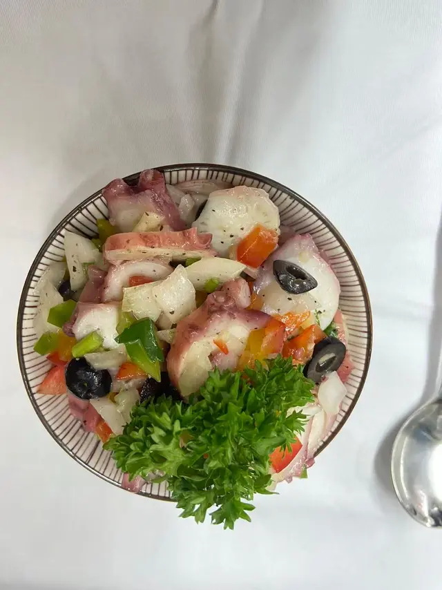 官也街附近,行到攰去食葡國菜做晚餐,入面有2層,葡國花磚裝飾,溫馨氛圍有點像外國小酒館,適合食飯喝點小酒談天說地的餐廳🍺🥗章魚沙拉滿滿的章魚粒,份量很足,海鮮味充滿口腔,章魚彈牙唔韌,用上橄欖油、醋等調味,味道清新開胃,加入洋蔥粒同和香菜增添菜式香氣,作為開胃菜很適合了酸爽的口感。🐔葡式烤雞經典葡式烤雞多帶點辣,餐廳貼心將醬汁分開,可以依自己口味調整辣度,烤雞醃得咸香但唔會太重口味,外皮香脆,雞肉依然保持肉汁嫩滑配撘啤酒享用太爽了🍻…查看更多