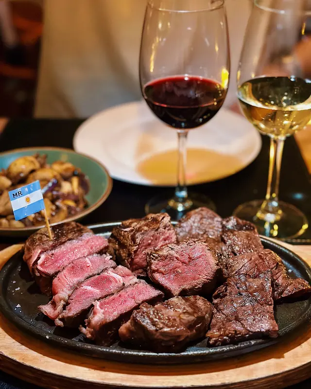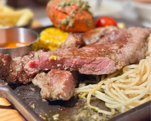 套餐包含湯品和飲料,可揀紅湯或白湯紅湯即是羅宋湯🍅,味道酸甜開胃,蔬菜足料🌽忌廉粟米湯味道不過不失~蒜蓉奶油麵包,蒜香撲鼻😸加拿大龍蝦尾拼西冷牛扒鐵板上桌時滋滋作響,可以揀選一款醬料西冷牛扒煎至外層微焦牛扒搭配紅波辣椒醬🌶️香辣惹味,提升牛肉風味建議可以點三成熟,然後慢慢用鐵板烤熟
