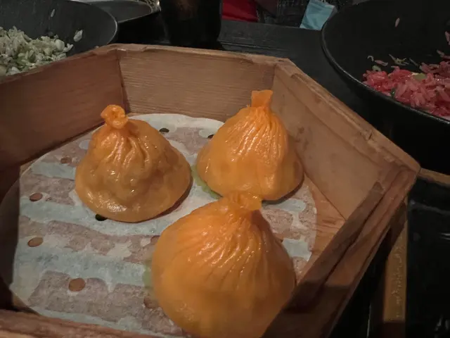 這是一家拍照不怎麼好看,但是味道還不錯的店。因為裡面燈光都是黑黑的,很難拍照。四個人點了一個雙人餐,又加了一點菜。吃點心居然也吃到了1600多。感覺性價比不是很高唉。創新的燒賣和擔擔小籠包味道我也不是很懂。其它都還不錯,茄子是真的很好吃!…查看更多
