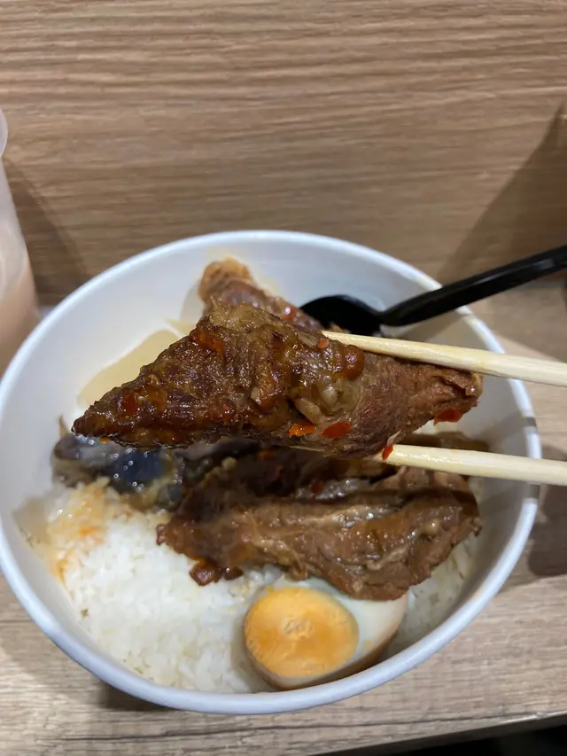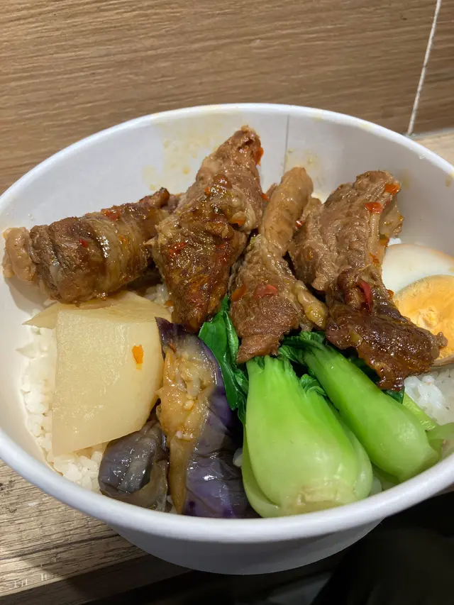 喺銅鑼灣想食一啲多小菜又靚嘅台式便當,於是嚟咗囍筷食lunch! 牛肉份量好多,而且筋同埋肉分布得好均勻。老闆娘仲話大廚用咗特製嘅香料去醃舊牛肉,所以好香口。 小菜包括茄子、蘿蔔、半隻蛋同埋少少蔬菜擺得幾靚,外相係唔錯嘅。加多$5就可以有一杯凍奶茶。用咗紅茶去沖,不過不失都okay嘅😋如果你本身鍾意牛肉好咀嚼同有咬口,又想食到牛筋嘅話,呢間可以一試。下次想試佢嘅台式麻辣菜式。整體都唔錯,上菜好快,不過店舖冇乜位,外賣嘅話就方便啲!…查看更多