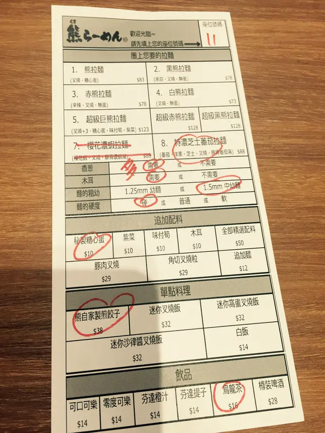 呢個麵,相當夠水準,可以返吃。話說上星期全家去完北海道10日返黎,鍾意食拉麵的我試左一幻、sumire、時計台、紫陽花等,10日差唔多試咗10間,先知道原來好多黎得香港開舖頭的過江龍,原來好多時比當地的拉麵店好得多。而呢間熊拉麵正正係其中一間同日本好食果班拉麵拍得住腳的舖頭。今日由於約左姐妹食飯,而小妹今日放5點,所以開舖前已經晌門口等。等到夠鐘開門,我就成為咗佢地(晚市)第一個客人。由於好姐妹6點先放工,所以慢慢坐低等佢黎。環顧四周,發現裝修雖然簡單,但其實都好乾淨,一貫日本仔作風。餐牌圖文兼備,圖多字少,啱曬我呢啲人。拉麵款式唔多,得幾款,同埋有啲小食飲品。坐坐下發現牆上貼咗兩張大海報,一張係櫻花蝦拉麵,一張係蕃茄拉麵,不過只有蕃茄拉麵有得食,店員話另一個拉麵只有晌佐敦分店提供。咁巴閉?一於就試下!晌呢間時候好姐妹已經黎到,於是馬上點野食。呢度點野食同其他拉麵一樣,自己揀口味同埋麵軟硬度。一人一個口味,唔駛爭。我點咗蕃茄麵,好姐妹試原味拉麵,另外叫左個餃子share。原本想健康啲飲茶,點知衰婆話梗係飲啤酒,於是cancel咗佢轉飲啤酒!啤酒先上,有凍杯,有誠意。都夠凍,好味。等左一陣,啲野就黎。先偷對面個湯試下!啊!都唔錯喎,無日本咁咸,食到係有心機煲的湯。跟住就試我自己果個蕃茄湯!wow!好濃好好味!一路食一路再睇下張點單紙,原來個湯係濃蕃茄豬骨湯,所以唔止有蕃茄味,而且有豬骨湯的濃味,咁樣配塔又真係幾好喎!食食下,餃子到。食一啖,好味道!個皮好脆,裏面有汁的。配啤酒實在是一絕。個湯俾我飲曬,食埋餃子,飽到聽日應該唔駛食早餐……查看更多