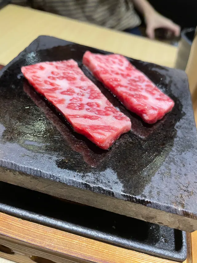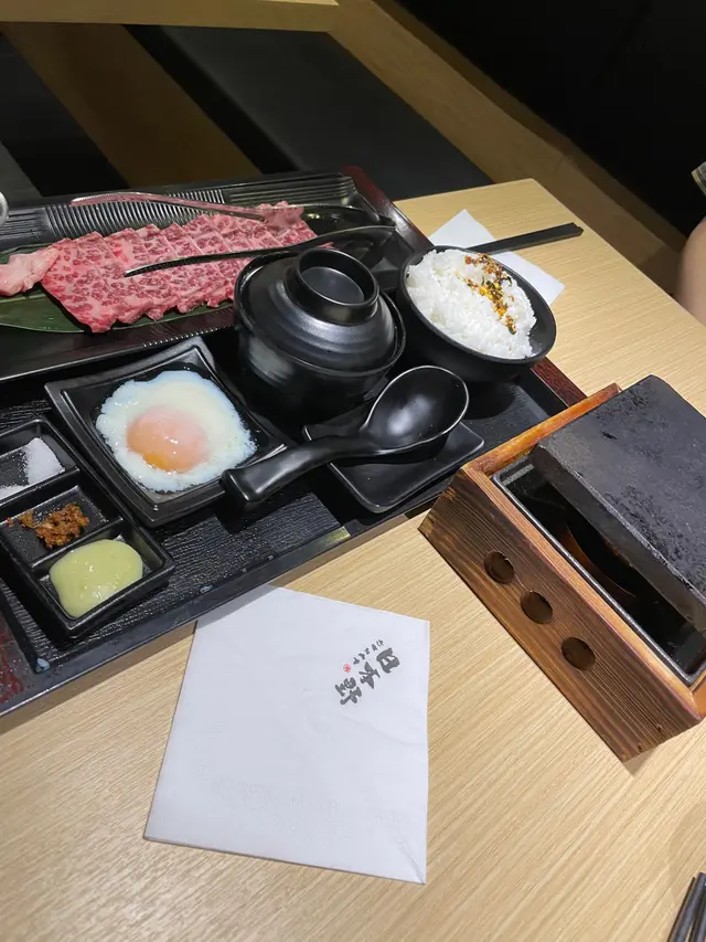 銅鑼灣的食店正在新舊交替,這一家主打燒肉的日本野正好開在核心地段。兩人叫了一個石燒牛肉加定食set. 另一個就試壽司定食。先講石燒牛肉再最要的是牛肉的質素,先上石鍋已經有點期待,牛肉看來脂肪比例很好,再加上共有十塊,這已經是worth the money. 它附上了芝麻燒肉汁,另有鹽,mustard 及一個似炸蒜的料調味。一口咬落肉很juicy. 雖沒有入口即溶的口感,但亦不遠矣。壽司定食卻一般,三文魚,加州卷等比較普通。另有一豬骨湯烏冬比較咸了。兩個餐也有加上一隻溫泉蛋,吃得不亦樂乎。
