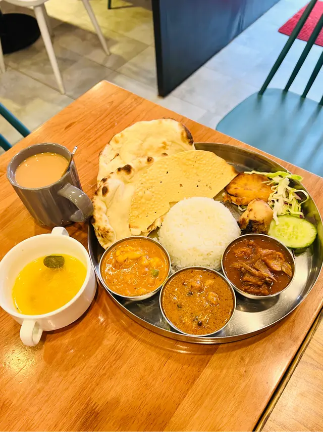曾經係米芝蓮一星的恆河咖喱屋,在東大街發跡,之後搬咗去西灣河,2018年結業,最近又回歸筲箕灣了。我哋今次食午餐,點了一客雜錦拼盤餐,和一客咖喱魷魚套餐。拼盤套餐有飯、印度烤餅麵包Naan和印度菜餅,仲有3款咖喱:雜菜,羊肉和雞肉。套餐就可以揀飯或印度烤餅。佢哋嘅印度脆餅比較辣,脆卜卜的好正。個人最喜歡印度烤餅,乾身爽口,下次打算買外賣食😎最重要都係講返咖喱,味道不算太辣,唔食得辣嘅人都應該可以入口,係好味嘅,但個人覺得烤餅比咖喱更出色👍🏻…查看更多