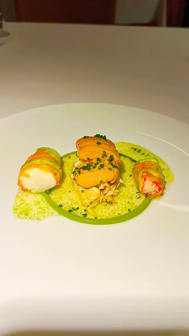 廢話少講/米芝蓮3星廚師主理/晚餐只有一個menu/5個course全部二揀一/再加petit fours/用咗好多新鮮日本🇯🇵食材嘅意大利🇮🇹餐廳✨DEGUSTATION MENU - $1,880/人🥖宜家sourdough基本上係梗局/但要提嘅係點麵包嘅橄欖油同醋/非常之香/醋帶有微微酒味/入口淡淡咁散出嚟又唔會太搶🐠amuse bouche係嚟自日本「魔鬼魚」 面珠墩/白露筍整嘅foam真係提升咗成件事/入口好鮮甜 🦀WARM KING CRABzucchini trombetta/ sea urchin/ fennel tomato jus第一道菜就已經大啖肉/鮮味十足/最正係冇殼/雖然講到明係warm/同埋呢個好肯定係大部份亞洲人嘅習慣或者習性問題/係好味嘅/只係個溫度有啲奇怪感/似係屋企留餸攤凍咗咁嘅溫度咁✨LANGOUSTINEblack maitake mushroom / langoustine juslangoustine juice真係超正/海鼇蝦配椰菜同菇/個人略嫌個菇味比較搶咗focus🦐ARISANAL LINGUINE"carabinero calidad suprema" red prawn / Mazara prawn sauce嚟自西班牙嘅大蝦手工扁意粉/亦都係本次嚟嘅目的/真係好食又好打卡able/湯汁充滿甜味同鮮味/蝦膏爆晒出嚟亦都好正/視覺味覺一流🍚WHITE MAITAKE MUSHROOM RICE用咗山形米/加埋啲白舞茸菇/離遠已經聞到好香/好在有得添飯🤩🦆CHALLANS DUCKbeetroot / spice duck jus / donabe matsutake mushroom ricemedium rare鴨肉/個皮先係重點/一邊脆一邊淋非常之正/而beetroot認真地可以寫包單/係眾多finedining入面數一數二易入口嘅✨ZABAIONEpre-dessert係無花果沙巴翁/都真係第一次食熱嘅無花果/香醇得嚟/亦都係國際慣例主菜之後清一清🍑PEACH AND TONKA BEANmarinated peach / tonka bean parfait / peach sorbet / yuzu gel呢個parfait創意唔錯/擺盤亦都好靚/yuzu gel好清新提昇咗層次🍫PETIT FOURS成㗎車隊埋嚟畀你任揀/真係樣樣都好吸引湯/推薦嘅係whisky chocolate同埋唔記得名嘅cookies❌唯一挑剔嘅位係水漬/餐具上面有/同埋天花冷氣出風位周邊都有明顯污痕不過整體嚟講/喺香港摘星指日可待🔥🌟提提你1️⃣可能少人嘅關係/感覺上冷氣比較大/記得帶定摟喇2️⃣餐廳主要係以松露/菇菌類入饌/咩gas味嗰啲全部可以出翻去3️⃣外國人煮意粉嘅al dente/食唔慣可以嘗試提出/不過我諗意大利人睬你都傻/但都並唔係代表意粉未熟甚至係小人地畀生嘢你食/隔離枱投訴意粉未熟好硬食唔到/真係黑人問號❓4️⃣蝦頭啲膏真係唔好嘥/擺落個碗度撈埋啲意粉真係一流推薦猩:🦧🦧🦧🦧🦧環境舒適度:🍴🍴🍴🍴🥢TUBER Umberto Bombana🇭🇰尖沙咀梳士巴利道18號K11 MUSEA 1樓113A號舖…查看更多