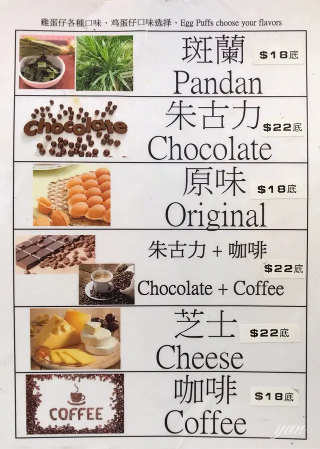 芝士雞蛋仔HK $22 / 一底雞蛋仔有六款口味,包括原味、斑蘭、朱古力、芝士、咖啡和朱古力加咖啡,價錢介乎 $18-22。雞蛋仔嘅色澤麻麻,而且一啲都五外脆內軟,偏硬身。芝士味好弱,只係雞蛋仔嘅外表有少量芝士粉係到。五建議試雞蛋仔。…查看更多