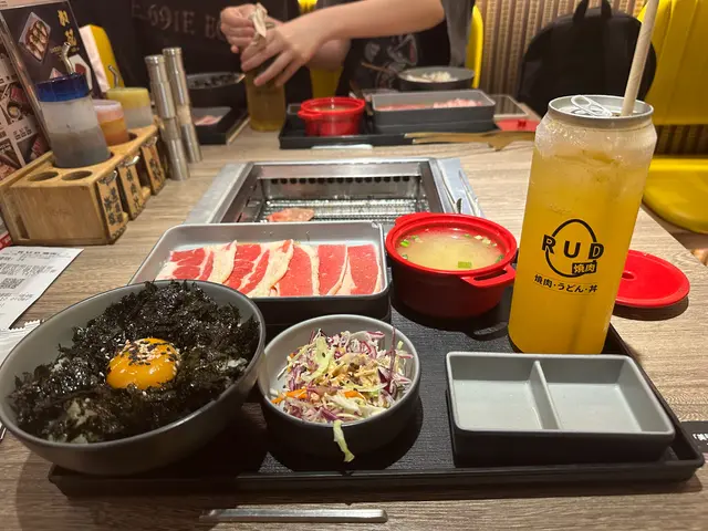 RUD燒肉係一人燒肉店 牛胸腹定食200克🥩 $76(+$11 玉子紫菜飯) 100g淨係要$5210片牛肉 玉子紫菜飯🍚 沙律🥙 麵豉湯🫕+$22 熱情果菠蘿梳打🥤牛肉有啲嚡 切得太厚 建議薄切 成嚿肉有啲油 感覺就係唔知食緊啲咩 建議大家試吓其他部位或者雞豬玉子紫菜飯,配燒肉汁好好食 本身紫菜都有啲鹽味好送飯熱情果菠蘿梳打 成個感覺好fresh $22幾抵飲 同我哋平時去Cafe飲嗰啲差唔多 都係嗰啲果醬加梳打水 有少少太甜 如果酸少少會再好飲啲醬汁有三款 燒肉汁 柚子蒜蓉汁 檸檬薑汁 燒肉汁甜鹹度適中 其他嗰兩個太濃 已經冚過肉嘅味如果大家平時lunchtime諗唔到食咩 入去嘆返一個鐘都幾正 始終喺香港地$70食到個燒肉定食真係好滿足環境企企理理 都幾乾淨 空間闊落唔會坐得好迫評分:(5分滿分)食物 🍤🍤🍤環境 🌱🌱🌱🌱價格 💰推薦程度 ⭐️⭐️⭐️⭐️RUD燒肉(淘大商場3期)🍗📍 九龍灣牛頭角道77號淘大商場3期地下G301-320號舖—————揀呢間定燒肉like?🤔肉質一定燒肉like好啲 但係燒肉like貴少少同埋佢只接受電子支付你冇得俾現金 🫥…查看更多