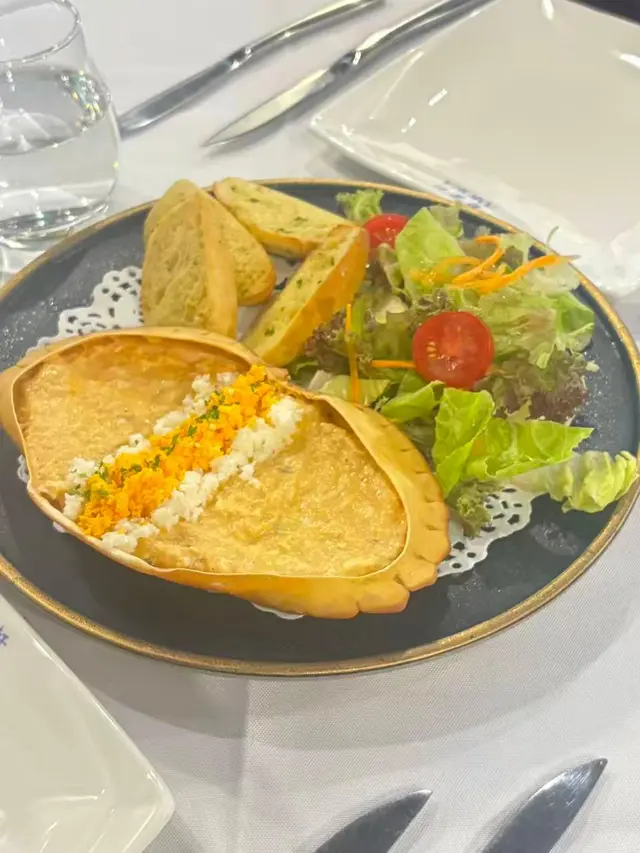 氹仔舊城區試過唔少葡國菜,呢間係openrice都有幾高評價,可以試埋。餐廳環境舒服,幾啱傾偈休息下。🔸白酒炒蜆作為一個餐前小食份量充足,幾欣賞個汁,美味鮮甜,蜆肉唔梅又無沙,落埋檸檬汁就更加開胃😍。🔸薯絲馬介休之前食嘅都係mouth size馬介休球,將馬介休整撈埋薯絲炸起都係第一次試。擺盤感覺高級餐廳,食落香脆咸口,再點埋醬汁,第一次食覺得幾好食😋。🔸主廚特製蟹肉釀蟹蓋蟹蓋大隻,入面都釀左滿滿蟹肉。蟹肉加埋上去法包到食,真係食到停唔到口,仲配埋沙律,食完都唔會覺得膩👍🏻。嗌左3個小食味道正宗,價錢合理,下次再黎可以試下其他菜式。…查看更多
