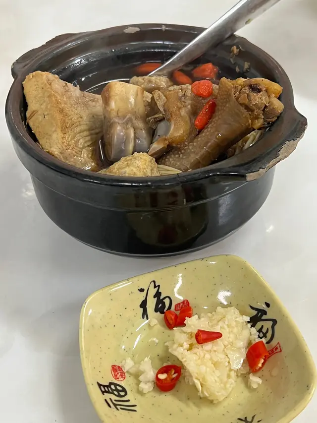 黃金醬虎蝦鹹蛋黃加紹酒製成香濃的黃金醬、用來撈飯都一流呀,原隻虎蝦肉新鮮爽口彈牙,厚實口感。姐姐牛丸以手打鮮牛肉製成肉丸,肉汁香濃,肉質爽口、粉絲湯底再配上酸辣醬汁,非常開胃。青辣椒炸蠔新鮮生蠔炸得金香可口、配上青辣椒醬汁,味濃小辣,非常惹味。芽菜雞是馬來西亞舊街場的代表性美食,雞肉鮮嫩、肉滑,再加上醬油及胡椒粉,味道吸引,而底下爽脆新鮮的芽菜更加是我的最愛。細滲 肉骨茶新加坡名菜肉骨茶,有著鮮濃的肉香,配上香料的獨特香味,加上慢慢滲出濃郁而不苦澀的藥材味道,材料方面十分充足,雞腳、豬手、豆卜、金菇、五層燒肉等,我哋兩個人,叫一人份量(細滲)就要足夠,兩人以上建議叫大滲。飲品方面亦有很多特色選擇,我地就試左桔仔話梅水同埋茶啡滲,茶啡滲味道,好像港式茶餐廳的鴛鴦,味道香甜淡淡的茶味再配搭出咖啡的感覺,非常特別。…查看更多