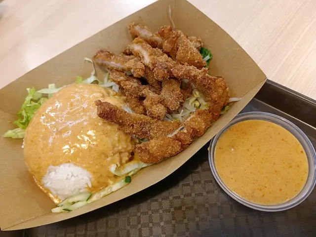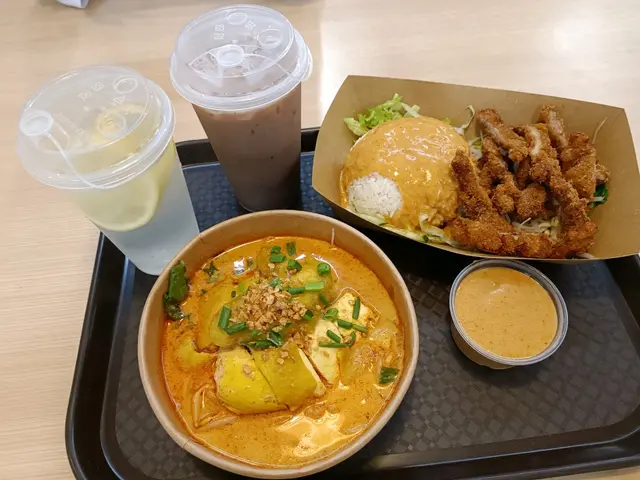 今次叫咗香茅豬扒煎蛋飯配椰香白咖哩汁$44,再加兩隻南乳雞翼$16,餐飲美祿$10。另外又叫咗個椰香白咖哩湯摻摻配豬頸肉$50,餐飲桔仔話梅冰$12。香茅豬扒煎蛋飯配椰香白咖哩汁份量都唔少,一如既往,個汁好惹味,豬扒又香又腍,一舊接一舊,好快ko 晒。南乳雞翼炸到好香脆,我囝連骨都lun 埋